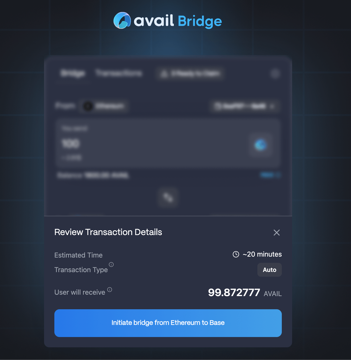 This exact process can be reversed to bridge AVAIL from Base to Ethereum.